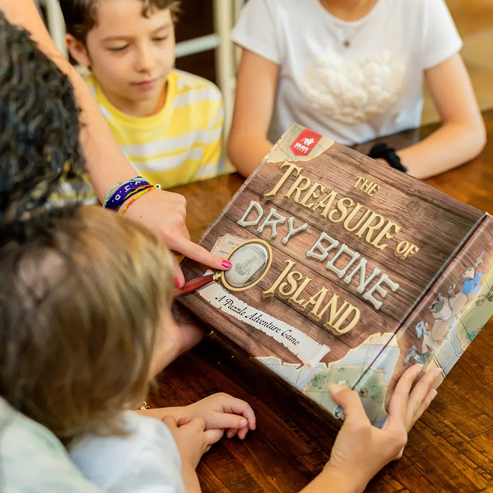 In this cooperative escape-room-style mystery game, you and your team must sniff out clues, solve puzzles, and follow the trail Archie left behind. Every player brings a special skill to the team, so pay attention, work together, and unleash your inner sleuth. Adventure, teamwork, and tail-wagging twists await in The Treasure of Dry Bone Island!