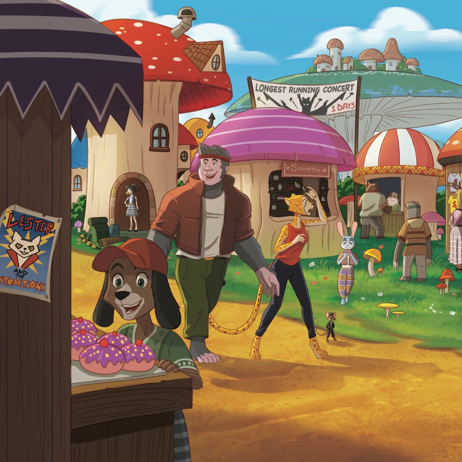 When Bongo and Rebel take a shortcut through Mushroom Village, they are bombarded by booming beats, endless snacks, and rock-star teed. Can they fight past the distractions or will they get caught in the groove... forever?
